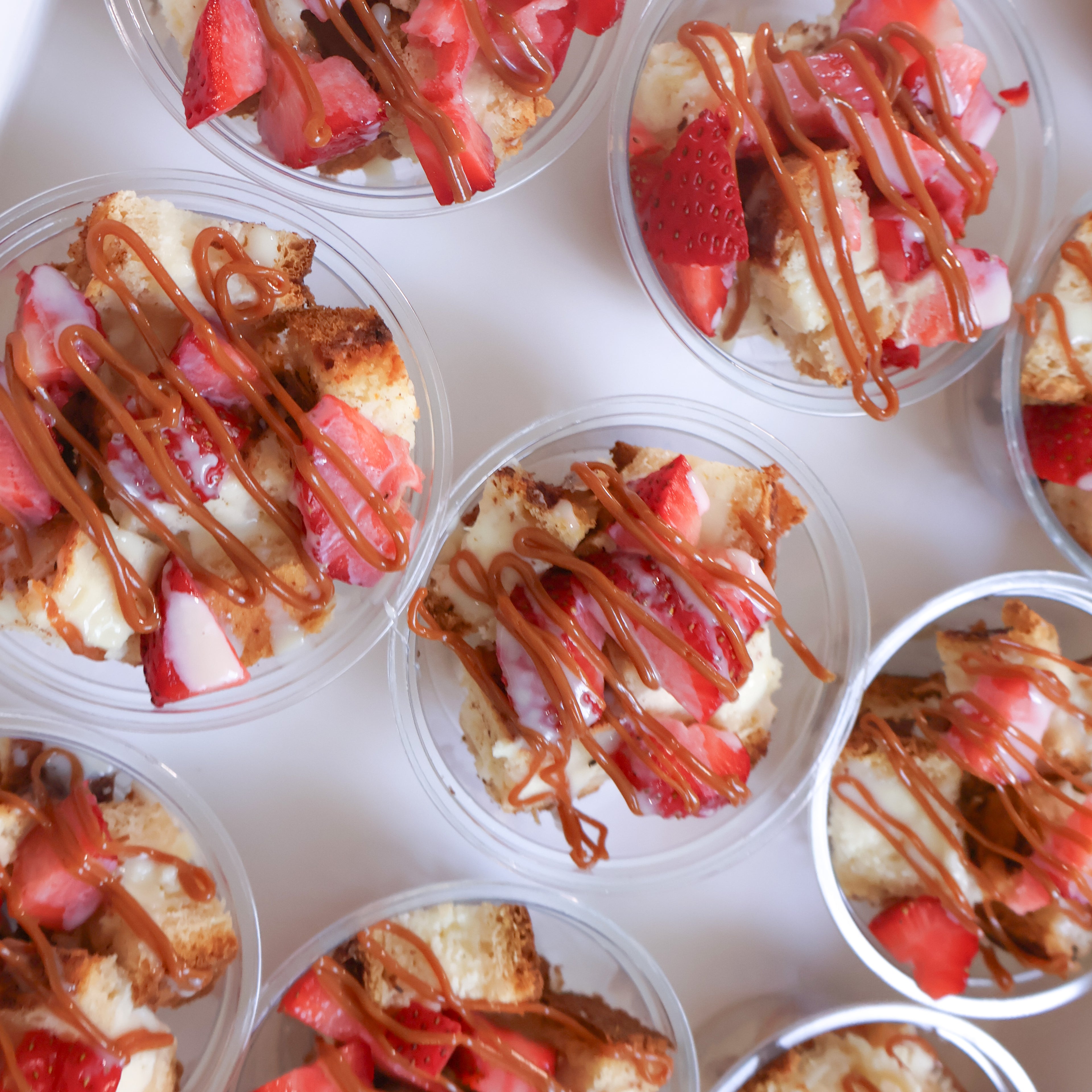 Mkay Treats has a ton of delicious treats you can add to your party package or order by the dozen. Pick from cheesecake shooters in various flavors, banana pudding, flans, or churro cheesecake cups.